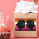 Two silhouettes of women in front of an LGBT lesbian flag with a cool texture to it.