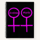 This awesome notebook is designed for lesbians. It features two pink female symbols standing side by side. The background is black and there is customizable pink text inside each of the symbols to put names.