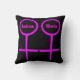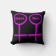 This awesome pillow is designed for lesbians. It features two pink female symbols standing side by side. The background is black and there is customizable pink text inside each of the symbols to put names.