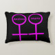 This awesome pillowis designed for lesbians. It features two pink female symbols standing side by side. The background is black and there is customizable pink text inside each of the symbols to put names.