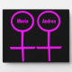 This awesome plaque is designed for lesbians. It features two pink female symbols standing side by side. The background is black and there is customizable pink text inside each of the symbols to put names.