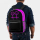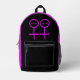 This awesome backpack is designed for lesbians. It features two pink female symbols standing side by side. The background is black and there is customizable pink text inside each of the symbols to put names.