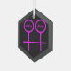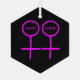 This ornament is designed for a lesbian couple. The design features two pink female symbols standing side by side. The background is black and there is customizable pink text inside each of the symbols to put names.