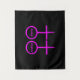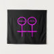This awesome tapestry is designed for lesbians. It features two pink female symbols standing side by side. The background is black and there is customizable pink text inside each of the symbols to put names.