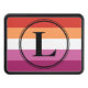 Add your own initial to this beautiful Lesbian flag (5 stripes) monogram design specifically made for a tow hitch cover.