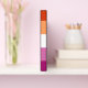 The "pink" lesbian flag consists of six shades of red and pink colours and a white bar in the centre. The original design, known as the lipstick lesbian flag, includes a red kiss and was introduced in the weblog This Lesbian Life in 2010. Both the "pink" and lipstick lesbian flags represent "homosexual women who have a more feminine gender expression".