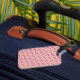 Pleasantly surprised at the quality of the luggage tag. It was exactly as shown and my daughter will be pleased. The address label on the back of the luggage tag was neat and clear.