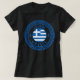 Lesbos, Greece women's black T-Shirt featuring the National Flag Of Greece inside an Ancient Greek pattern circle symbol. Enjoy wearing this T-Shirt while you're on vacation on the beautiful Lesbos island or give it as a gift souvenir.