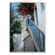 Un escalier typique de niveau de rue à une des maisons majestueuses sur Mykonos. L'escalier bleu heurtait contre les toiles blanches de lavage de fond de l'île.