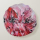 Le coussin rond de l'enfant présentait le tableau "L'Esprit Pragmatique" de Carmen Fine Art dans les tons rose, rouge et blanc dans un style moderne figuratif impressionniste abstrait. "On pourrait dire que l'art est un symbole de l'univers, étant lié à cette vérité spirituelle absolue qui nous est cachée dans nos activités positives et pragmatiques." (Andrei Tarkovsky)