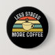 Anyone who loves coffee and knows the effect it has on their stress level will love this retro style coffee design on bags, mugs, stickers, T-shirts, pillows, and more featuring a steaming cup of coffee design with text that reads Less Stress More Coffee!