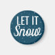 Modern and personalizable blue fridge magnet with white snowflakes.