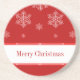 Whimsical and fun Let it Snow Holiday Coaster in bright red featuring a cascade of hand drawn snowflakes. This fun sandstone coaster is perfect for adding some seasonal flair to any decor while protecting your furniture. Easy to customize, simply add the personalized text of your choosing.