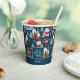 Add a cute seasonal touch to your holiday kitchen dining table decor with this adorable custom blue and white Christmas paper cup. Paper cup has a pattern of a festive brown bear ice skating, an owl wearing a Santa hat and glasses, a bird on a snowy mountain, a bunny playing a trumpet, and Christmas trees in the snow. Centre text says I don't know let it snow. Add your family last name for a personalized touch.