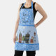 This pretty apron has a wintry scene with two houses, a tree, birdhouse and two adorable snowmen dressed for warmth. There is a heart above and snowflakes. The top and bottom of the apron are pretty white snowflakes against a blue background and topography says "Let it Snow". Such a sweet apron, perfect for entertaining or just cooking or baking for the family.