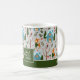 Add a cute seasonal touch to your holiday kitchen decor with this adorable custom green and white Christmas coffee mug. Mug has a pattern of a festive reindeer in a cozy sweater, a bird, houses, holly berries, and Christmas trees in the snow. Centre text says I don't know let it snow. Add your family last name for a personalized touch.