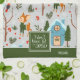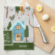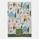 Add a cute seasonal touch to your holiday baking and cooking with this adorable custom green and white kitchen towel. Towel has a pattern of a festive reindeer in a cozy sweater, a bird, houses, holly berries, and Christmas trees in the snow. Centre text says I don't know let it snow. Add your family last name for a personalized touch.