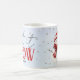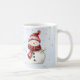 Let it snow cute snowman Christmas holiday Coffee Mug. This delightful holiday design features an endearing snowman dressed in a bright red scarf and hat, perfectly positioned on a gentle blue background and the text "Let it snow". Personalize it with your own name.