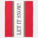 This bright seasonal design features blue and brown pinstripes highlighting "LET IT SNOW!" text inside a horizontal centre white stripe. Wide bright red outer stripes complete the festive composition. All colours and text can be personalized.