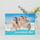 Share one of your favorite vacation pictures with this funny photo Christmas card featuring a modern overlay with the wording "Let it snow somewhere else" decorated with white pines and snowflakes.