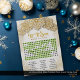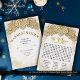 "Let It Snow" winter-themed word search makes a lovely holiday party favour. At your party or event, set out this elegant card with a gold glitter snowflake design for your guests to enjoy. Create a custom party favour by personalizing the message on the front of the card and adding your name: order preprinted cards or a digital download to print at your convenience. The solution to the puzzle can be found in the images for this card.
