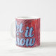 Red fan design with the words Let it snow, get ready for your holiday gifts, sip with your loved ones, this mug is for all who loves to share.