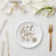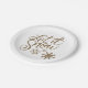Let It Snow in gold script on a paper plate. Great for winter holidays and parties.