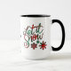 Festive Christmas mug featuring the phrase "Let it snow" and snowflakes in a plaid pattern. The name on the front of the mug can be customized with the name of the recipient.