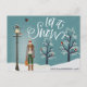 Lovely Christmas card featuring a girl with winter red cardinal birds flying and sitting on trees covered with snow. Available as a flat card, folded card and postcard. Wish you all a Merry Christmas and Happy New Year!