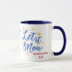 "Let it Snow Somewhere Else" declares this cute winter themed coffee mug! The text is printed on both sides, with gold snowflakes falling all around. At the centre is your name or other text, as you wish. Text colour is blue and red. Perfect for the Holiday Season, but appropriate all winter long!
