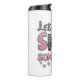 Let your cup be as unique as your drink preference! This custom tumbler’s double-walled construction helps keep your warm beverages warm and your cool beverages cool, all while keeping your hands comfortable. The low profile lid snaps tight to help prevent spills.
