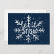 Image by M.Leheda | Shutterstock. Image ID: 744991282 | This holiday typography design features a white snowflake design on a dark blue background.
