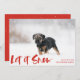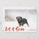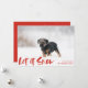 Let it Snow modern brush red script, holiday photo card. Back of card features snow overlay on solid red color.