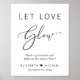 Chic wedding reception dance floor sign featuring "Let Love Glow" in a mix of simple modern typography and a stylish script, your first names joined together with a heart and your reception date. You can easily personalize your glow stick instructions.
