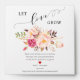 Please note: "Let Love Grow" wording artwork and a vibrant luscious watercolor blush pink floral arrangement both cannot be edited, changed, moved, or deleted.