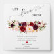 Let your guests bring something home to remind them of your special day. This design features a vibrant watercolor marsala and pink floral arrangement with an elegant calligraphy script of 'love" and heart. You can personalized with a short message, the names of the bride and groom, wedding date. You place a seed packet inside the envelope but you will need to buy those seeds separately. Please note: "Let Love Grow" wording artwork and the vibrant watercolor marsala and pink floral arrangement cannot be edited, changed, moved, or deleted.