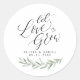 "Let love grow" modern calligraphy rustic greenery Classic Round Sticker