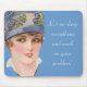 This unique mousepad features a vintage image of a woman in a fancy hat, with a funny quote. The background colour, and text/font, can be customized to fit your needs.