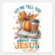 Peaceful, colourful design featuring a fall / autumn scene with an open book, pumpkin and coffee. The colourful inspirational text reads: "Let me tell you about my Jesus". This design is available on a wide variety of products.