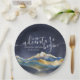 Let The Adventure Begin Blue Gold Mountain Wedding Paper Plate