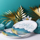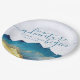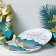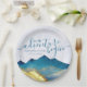 Modern Vintage Elegant Wedding Paper Plates Template - Blue Green and Faux Gold Foil Watercolor Mountains Landscapes Scenery.