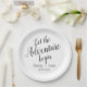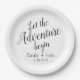 Let the adventure begin custom personalized add your names and date simple, modern, elegant handwritten font wedding paper plates.