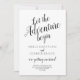 Let the adventure begin custom personalized simple, modern, elegant minimalist black and white handwritten font wedding invitation.