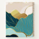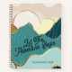 This modern style travel notebook is perfect for those who love to explore the outdoors. The notebook features a beautiful design of gold and teal mountains with the phrase “Let the Adventure Begin” in script font. The notebook can be personalized with a name of your choice, making it a great gift for yourself or a loved one.