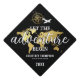 Celebrate your academic success and excitement for future adventures with our travel-themed graduation cap topper. Featuring a stylish black background customizable to any colour, a faux gold foil world map, compass, and plane, it signifies the start of a new journey. With the saying 'let the adventure begin', and room for your name, school/college, and class year, this cap topper makes your graduation day extra special. Embrace the thrill of what lies ahead with this one-of-a-kind keepsake.