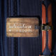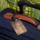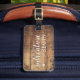 Let the adventure begin features wood print luggage tag. Add your address on the back.