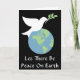 This design features a white dove holding an olive branch in its mouth atop the earth. Customizable text on the front reads "Let There Be Peace On Earth." Add your own message to make this card your own!