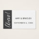 The words "let us buy you a drink" were rendered as a typographical graphic overlay featuring a modern, hand-lettered font. Below that you'll find the words "Good for One Free Adult Beverage". This copy can be modified if you like. All text here is white over a dark grey background. // On the back, the "fancy type" was used to create a graphic reading "Cheers!" which was rotated 90 degrees and added over the grey band along the left side. The other type was handled in reverse: your names and dates will appear in the dark grey over a white background. You can change the background colours if you'd like a different palette. // This design was created to complement a growing modern wedding suite that features these fonts and this hue of dark grey paired with white. // In this set there is also a drink ticket option with humourous wording; check that out if you'd like some options. // 9 // Designed by Melody Watson for Paper Muserie.