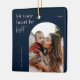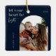 Modern Typography Christmas Quote, "let your heart be light", Holiday arch frame photo ornament in navy blue.
