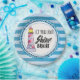 Paper plates with a blue striped pattern. A blue nautical themed circle in the centre. A red striped lighthouse with the typography text which reads: Let your light shine bright.